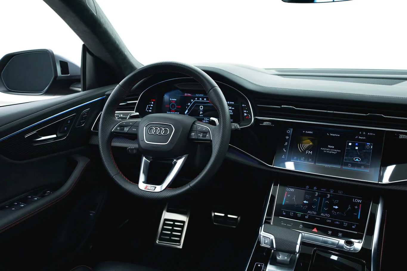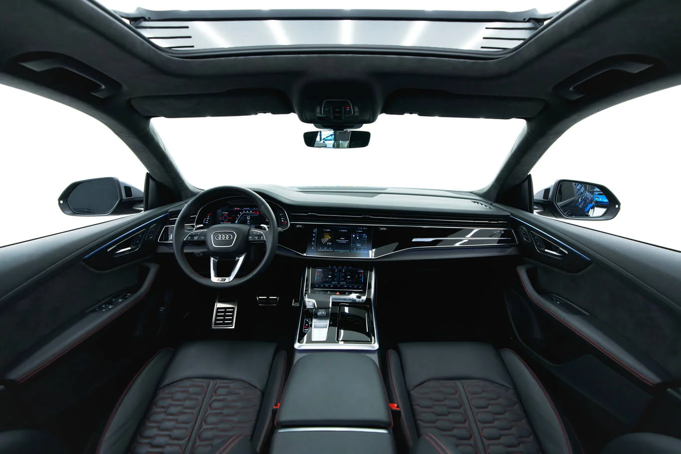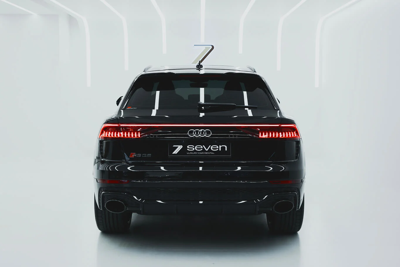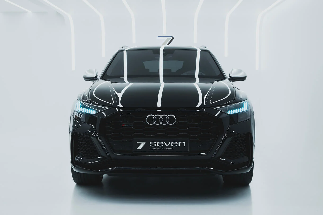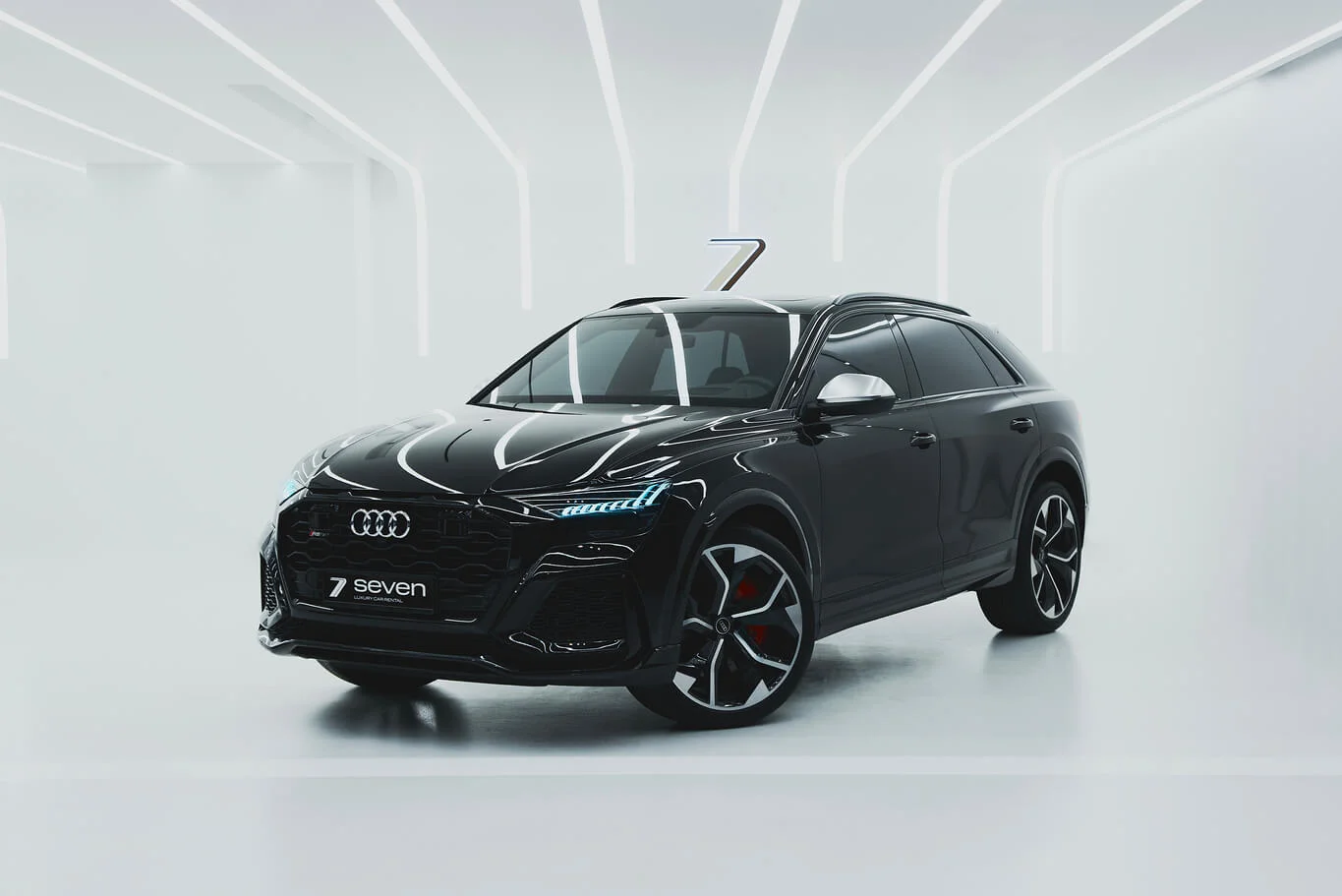 Dark-spec RSQ8 with coupe-SUV shape and understated high-performance character. Pricing changes automatically by rental duration.
